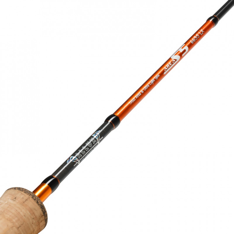 Ультралайтовая серия ALLUX AREA S5 — изготовлена из углеволокна марки IM14 JK-L по уникальной технологии производства бланков под вакуумом. Серия разработана под ловлю форели на платных водоёмах Италии, в том числе для ловли на мормоджиг. Многократные тесты спиннингов в полевых условиях на реках и ручьях России показали, что бланк имеет все характеристики для успешной «стримовой» ловли ручьевой форели и хариуса на колеблющиеся и вращательные блесны, воблеры до 6 см и силиконовые приманки. Лёгкие бланки, с заложенной во время проектирования достаточной мощностью имеют ресурс для сдерживания хариуса и дикой форели до 1-1,2 кг. Спиннинг имеет средне-быстрый строй. Спиннинг AREA S5-6035 LX – удобно использовать для ловли на платных прудах и в ручьях, AREA S5-6635 LX с достаточным запасом мощности помогают сделать точный дальний заброс и уверенно контролировать крупную рыбу при ловле на речках. Разнесённая рукоять изготовлена из высококачественной EVA. Пропускные японские кольца FUJI Concept «O» c инновационной прессованной Y- образной рамой колец Deep Pressed Frame, легкие и прочные.