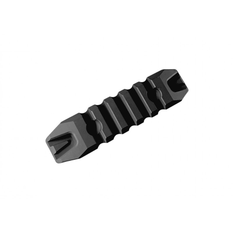 XGUN M-LOK WEAVER RAIL (S) имеют на концах «срез» в плоскость, поэтому хорошо подойдут под работу в месте контакта с рукой, т.е. месте хвата, а также не будут цеплять снаряжение, которое часто происходит с классическим формфактором. Длина 90 мм.