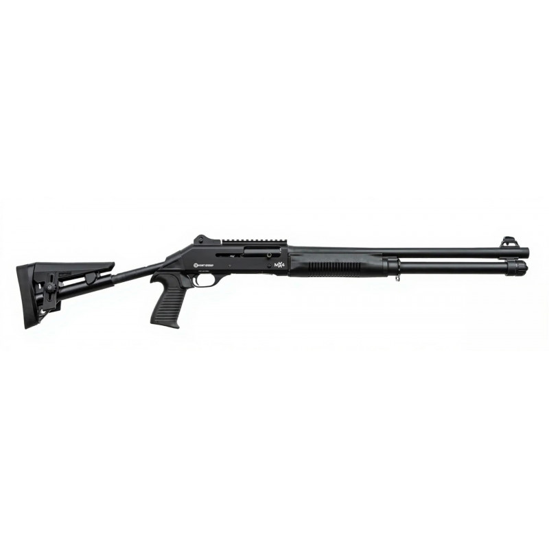 Гладкоствольное полуавтоматическое ружье MX4 от турецкого производителя Hunt Group конструктивно повторяет крайне популярное ружье одного из итальянских производителей. Автоматика MX4 работает благодаря газоотводу. Такая конструкция обеспечивает надежную работу ружья в различных условиях и с различными навесками дроби — от спортивных навесок до магнумов. Замыкание ствола обеспечивается поворотом затвора на 2 боевых упора. Магазин подствольный трубчатый, на 7+1 патронов, что при длине ствола в 510 мм является оптимальным решением. Ружье сразу с завода имеет установленную планку пикатини стандарта М1913. Приклад телескопический, регулируемый, с 3 позициями, а также возможностью регулировки подщечника.