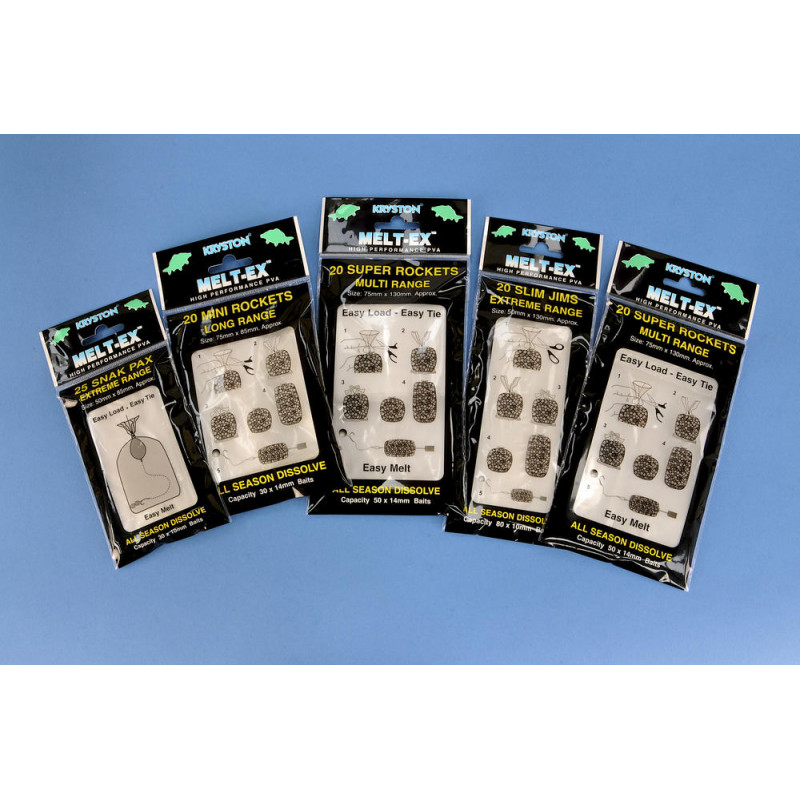 Растворимые в воде пакеты высшего качества. Пакеты изготовлены из очень плотного, двухслойного, рельефного материала (PVOH). Это позволяет работать с ними даже при большой влажности. Швы усилены, ширина пайки 10мм. Благодаря этому, пакеты не рвутся при утрамбовке и самом экстремальном забросе. При испытаниях пакеты выдерживали заброс на двести ярдов (182м). Специальная антистатическая обработка пакетов препятствует слипанию, что значительно облегчает загрузку. MELT-EX оптимальны для использования в любое время года. PVOH материал не токсичен и безвреден для окружающей среды. Пакеты выпускаются пяти размеров, что дает возможность использовать их при любых условиях ловли.