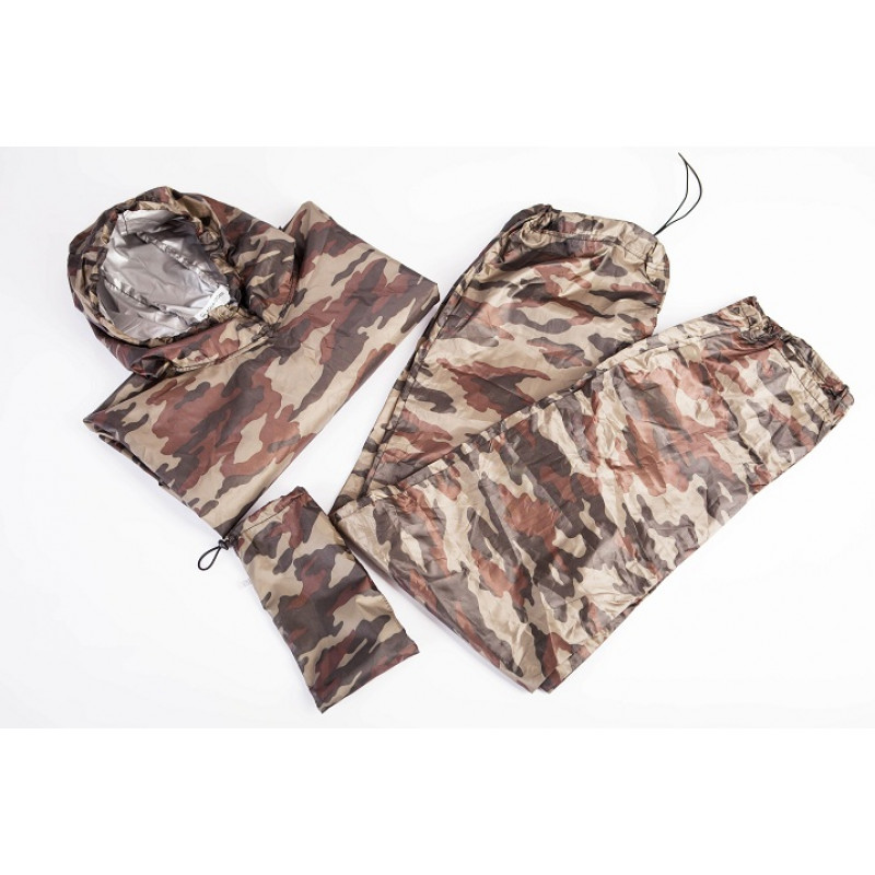 Костюм - Дождевик лёгкий, компактный и 100% водонепроницаемый. Модель куртки - «пончо» не сковывает движения, а укороченные рукава не мешают манипуляциям. Капюшон затягивается. Брюки прямые. Легко транспортируется в маленькой сумочке.