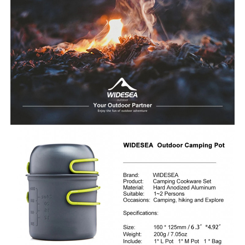 Сверхлегкая посуда для кемпинга компании Widesea. Походная посуда для пикника, путешествий, туризма. Набор состоит из двух кастрюль со специальным покрытием.