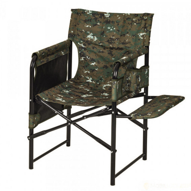 Стілець складний "Режисер" виконаний з міцних сталевих труб. Виготовлений з брудовідштовхувальної тканини Oxford. Надійна конструкція витримує вагу до 120 кг.