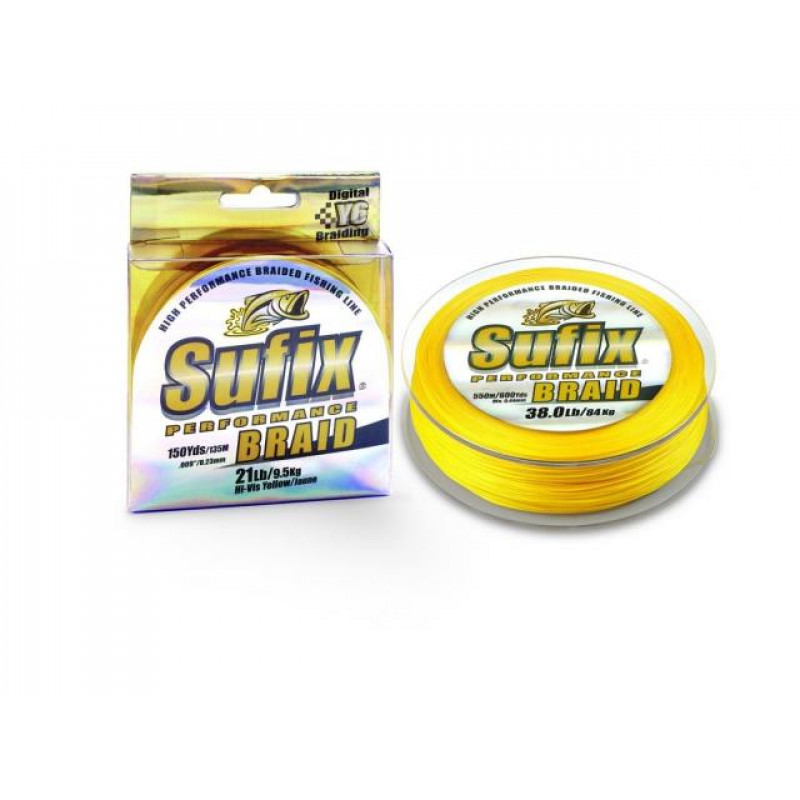 Шнур Sufix Performance Braid 135m Hi-Vis Yellow - якісна плетена волосінь, у виробництві якої була використана технологія Digital Y6, що дозволило виготовити більш круглу, гладку та тонку в діаметрі волосінь. Завдяки цьому дозволяє робити досить далекі закиди. Має високу чутливість і хороші антиабразивні якості. Має яскраво-жовтий колір. Поставляється в розмотках по 135 метрів.