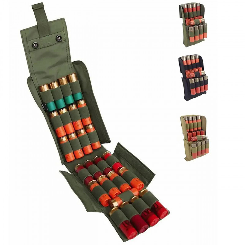 Переваги: Вміщує 25 набоїв 12, 16 та 20 калібру Швидкий доступ та зручна перезарядка Надійне кріплення набоїв в еластичних осередках Повністю розкривається — зручно для заряджання та розряджання Закривається на липучку та клапан з язичком Підходить для кріплення на тактичні жилети, пояси, рюкзаки Характеристики: Розміри: 23×10×3 см Вага: 170 г Матеріал: зносостійкий нейлон